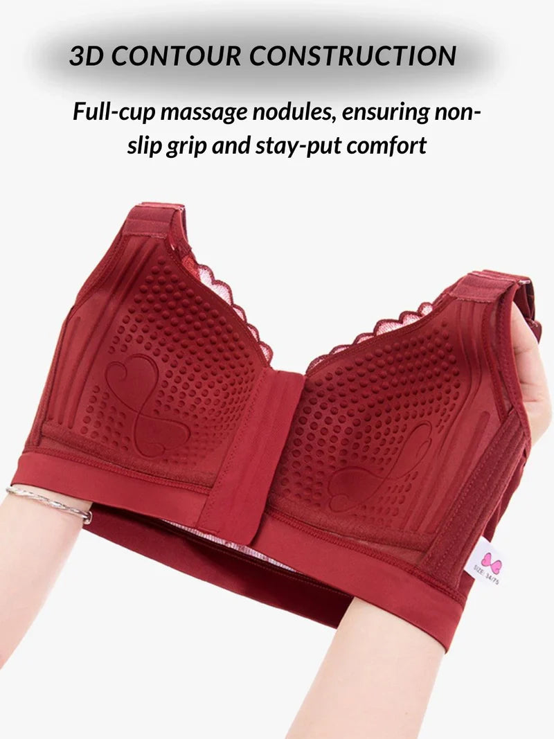 This ultra-thin, lightweight bra features a smooth front-closure design for easy wear and a seamless finish, ensuring invisibility under clothing. Crafted for fuller busts, its innovative minimizer construction gently contours to reduce the appearance of the bust while providing lift and shaping.